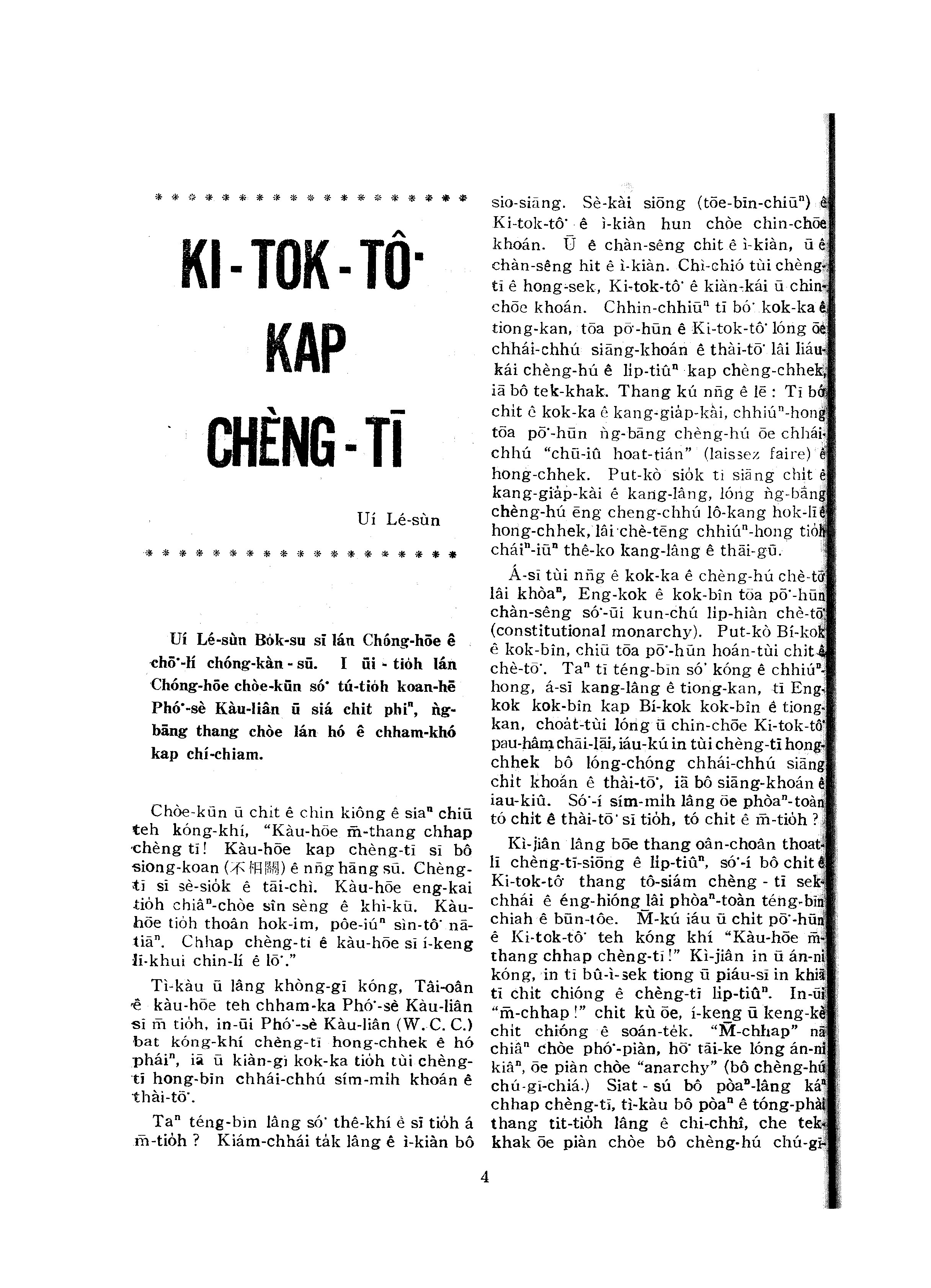 KI-TOK-TÔ͘ KAP CHÈNG-TĪ